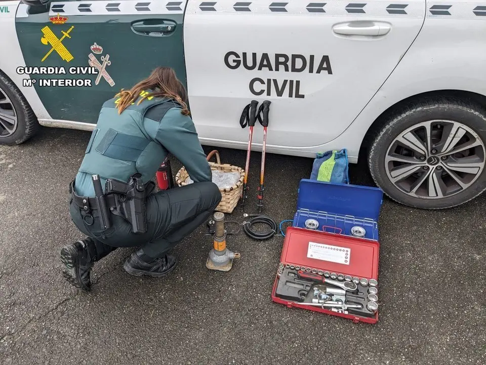 Fueron trasladados junto a su vehículo, en el que se encontró, oculto en el maletero, todo el material robado del todoterreno.