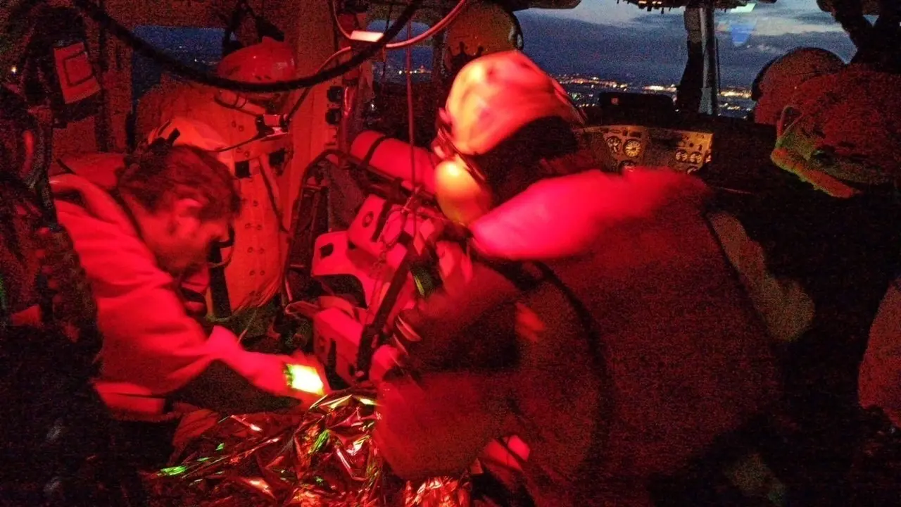 Efectivos de la aeronave descendieron hasta la mujer para proceder a su valoración.
