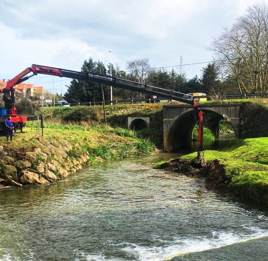 Las actuaciones de limpieza de la Confederación han comenzado con un dragado del río que se encuentra junto al Molino de Mauri, en Beranga. Un punto "muy conflictivo" ya que cuando se producen riadas "se atascaba el acceso a unas treinta viviendas", ha explicado el alcalde, José María Ruiz.