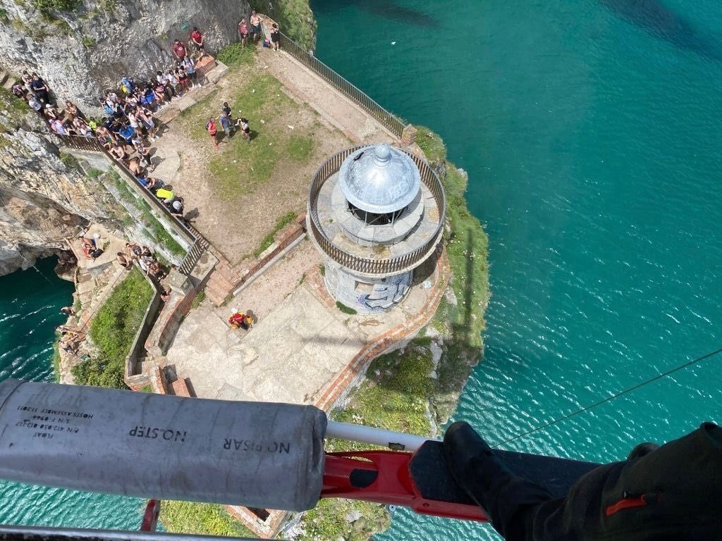 El equipo del helicóptero del Gobierno de Cantabria ha rescatado en este sábado en el Faro del Caballo, en Santoña, a una mujer de 26 años y procedente de la Línea de la Concepción (Cadiz) que se encontraba indispuesta y sufría arritmias.