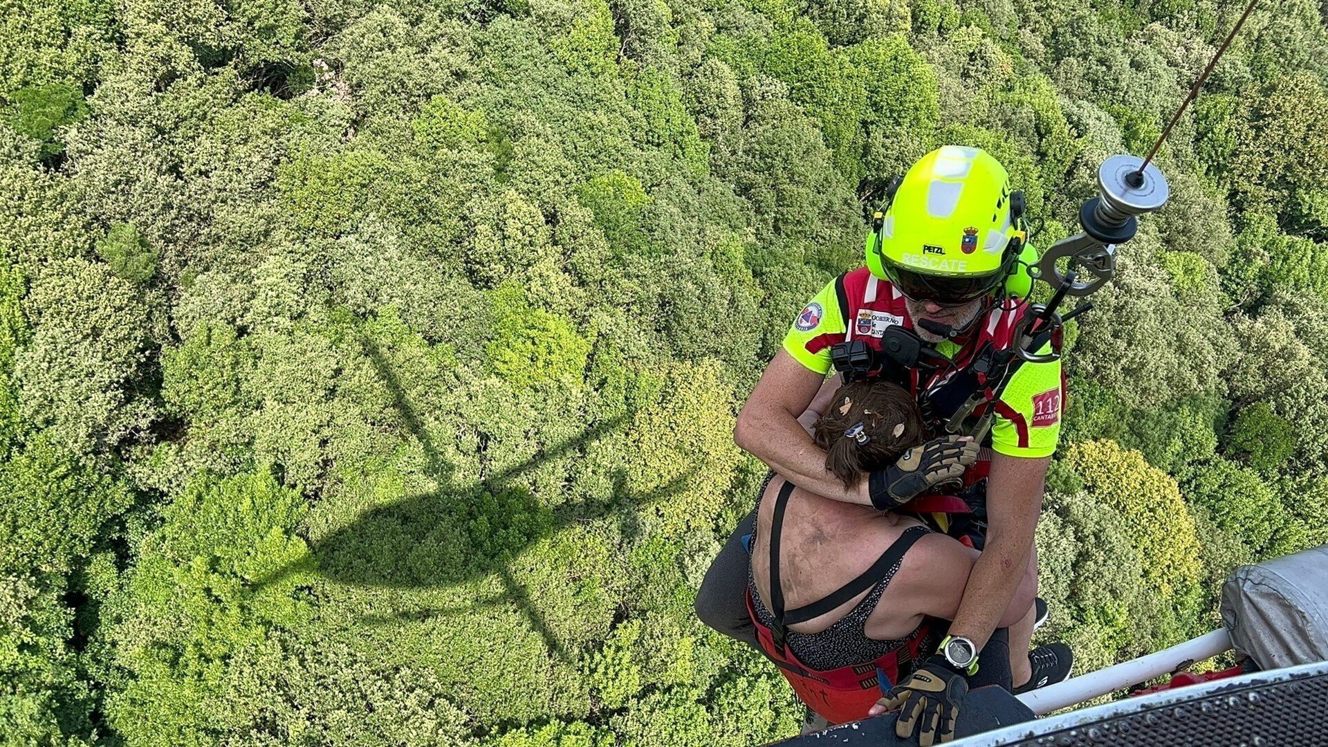 La mujer se encontraba en el último tramo de ascenso de la ruta cuando se ha sentido indispuesta. Allí ha sido atendida por el rescatador y el médico, que posteriormente la han izado a la aeronave.