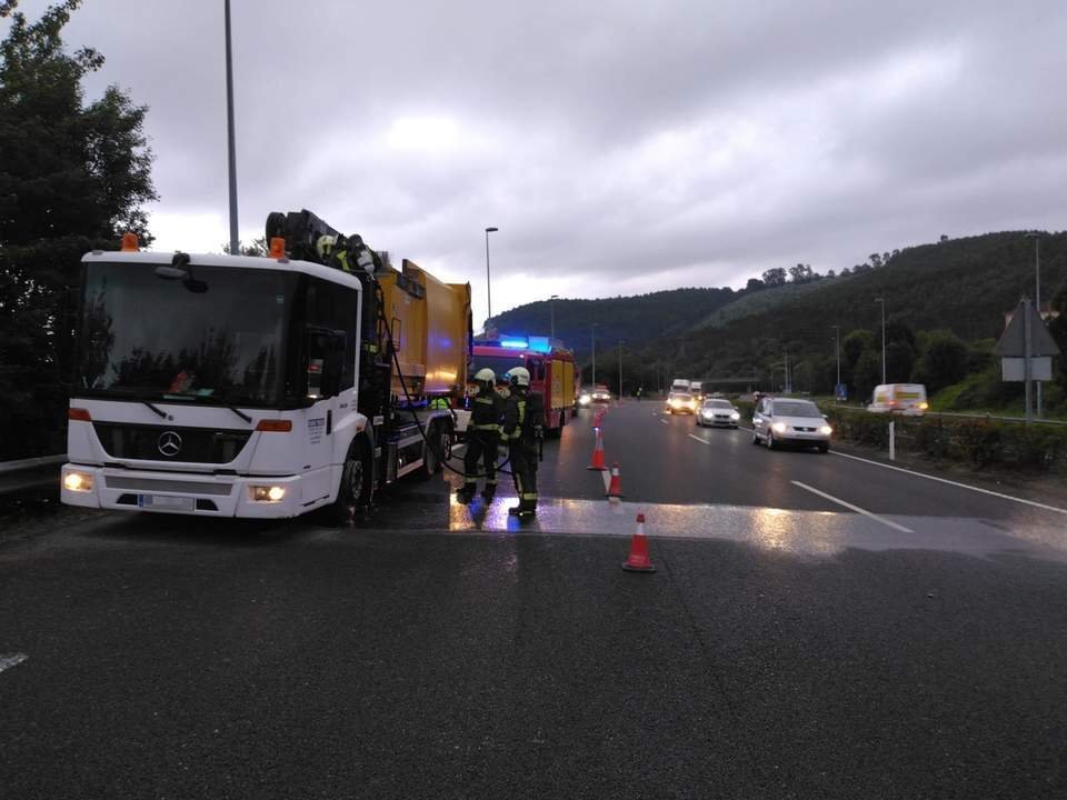 Se incendia un camión de reciclaje de papel en la A-8 en Hazas de Cesto
