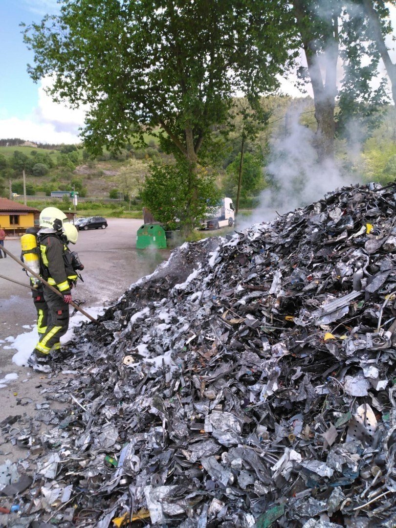 Tras percatarse del fuego, el conductor ha descargado la chatarra y a continuación los efectivos del 112 lo han sofocado con espuma y han supervisado la carga con una pala.