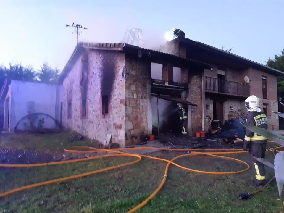 Bomberos del Servicio de Emergencias 112 del Gobierno de Cantabria y del Ayuntamiento de Santander han extinguido este viernes por la tarde un incendio declarado en una antigua cuadra utilizada como almacén en Ambrosero (Bárcena de Cicero), que ha quedado completamente calcinada.