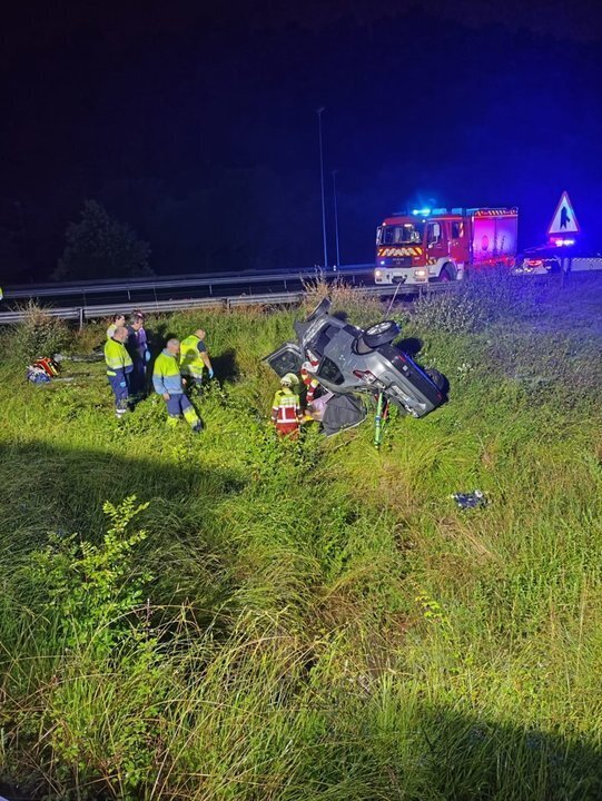Liberan a un conductor que quedó atrapado entre su vehículo y el suelo tras volcar en la A-8 en Cicero