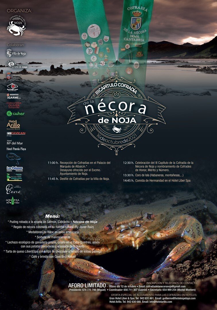 Noja celebrará del 15 al 17 de octubre el IX Festival de la Nécora con un programa de actividades organizadas por el Ayuntamiento en colaboración con el Gobierno de Cantabria en torno a la figura de este crustáceo, entre las que se encuentra el III Capítulo de la Cofradía de la Nécora o la Feria Top Gourmet.