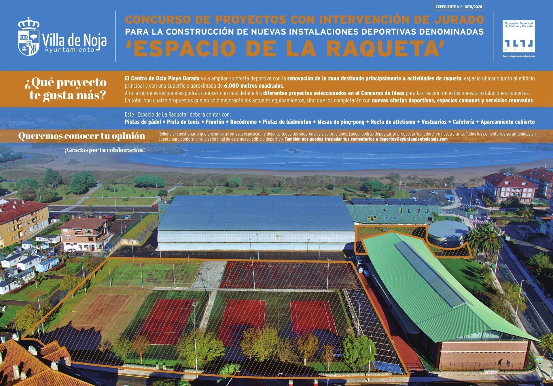 El Ayuntamiento de Noja dará a conocer este lunes, 3 de abril, el proyecto elegido para desarrollar el futuro espacio 'La Raqueta' del Centro de Ocio Playa Dorada, una renovación integral de las instalaciones con la que se ampliará la oferta deportiva del municipio.