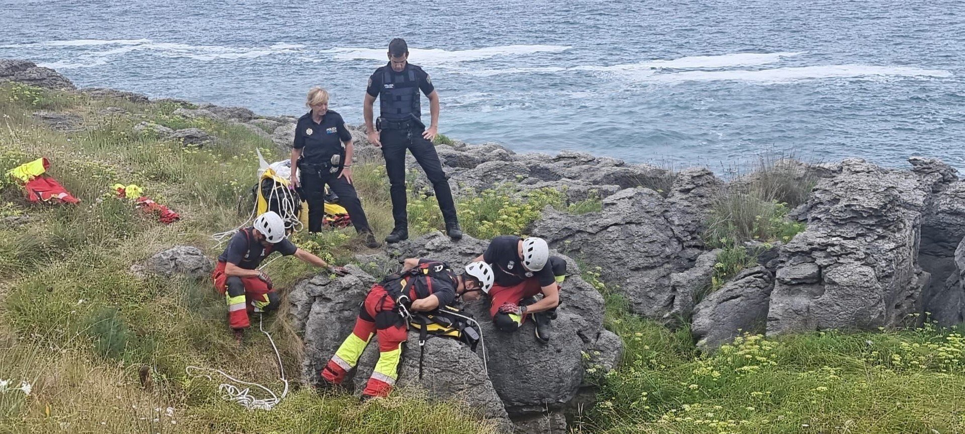 Rescatan en buen estado a un perro atrapado tras caer por los acantilados de Noja