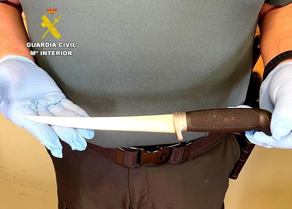 En el momento de su localización, los agentes intervinieron al detenido un cuchillo deshuesador con funda, de 18,5 centímetros de hoja, presuntamente utilizado durante el robo.