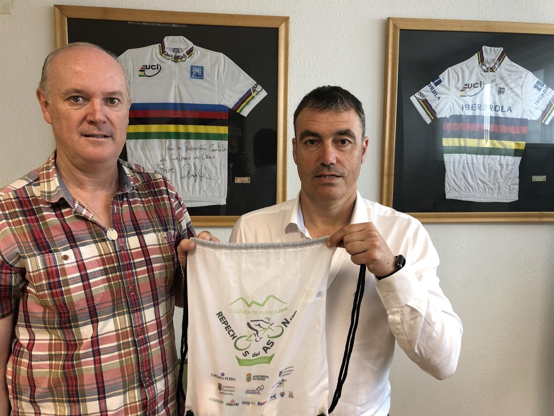 El alcalde del Ayuntamiento de Ruesga, Jesús Ramón Ochoa, organizador de la I edición de 'Los Repechos del Asón', ha entregado al presidente de la Federación Cántabra de Ciclismo, Juan José Trueba, de un porcentaje de la cantidad recaudada por las inscripciones en la prueba, así como de lo donado por el público en las urnas el día de la celebración.