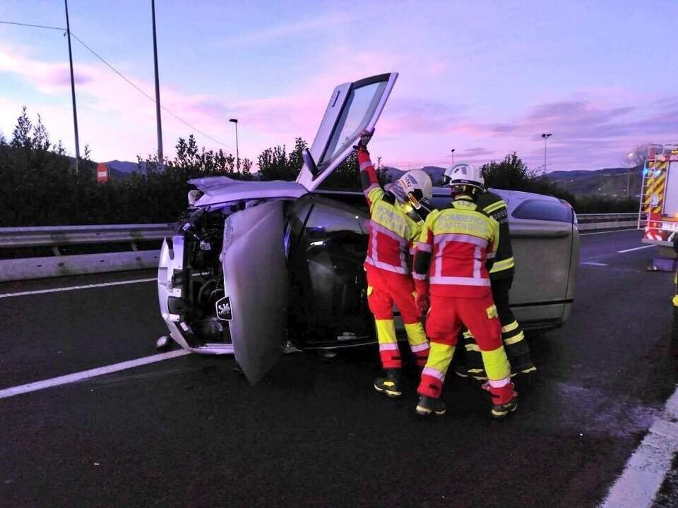 Hasta el lugar se ha movilizado al Servicio de Urgencias y Emergencias 061, la Guardia Civil, el Servicio de Carreteras y los Bomberos del Gobierno de Cantabria, que han puesto el turismo sobre las ruedas y han colaborado en la limpieza de la vía.