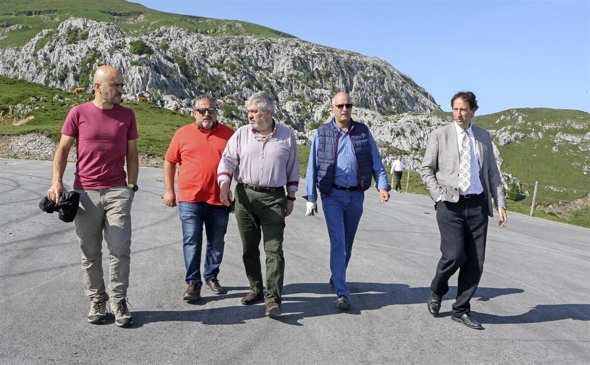 El consejero de Obras Públicas y Vivienda en funciones, José Luis Gochicoa; el alcalde de Arredondo, Leoncio Carrascal, junto a responsables de la organización de la carrera y de la Consejería de Medio Rural, Pesca y Alimentación, han visitado este puerto de montaña, que cuenta con la distinción de categoría especial, y donde se realizarán mejoras para que la zona de llegada se encuentre en condiciones adecuadas.