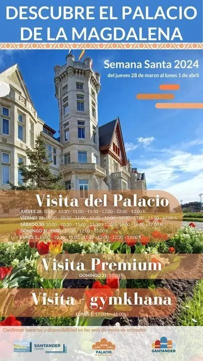 El Palacio de la Magdalena amplía los horarios de visitas en los días de Semana Santa, ante la afluencia de visitantes que se prevé, y ofrecerá una nueva visita premium, que se desarrollará el domingo 31 de marzo, a las 12.30 horas, con aforo máximo para 25 personas.