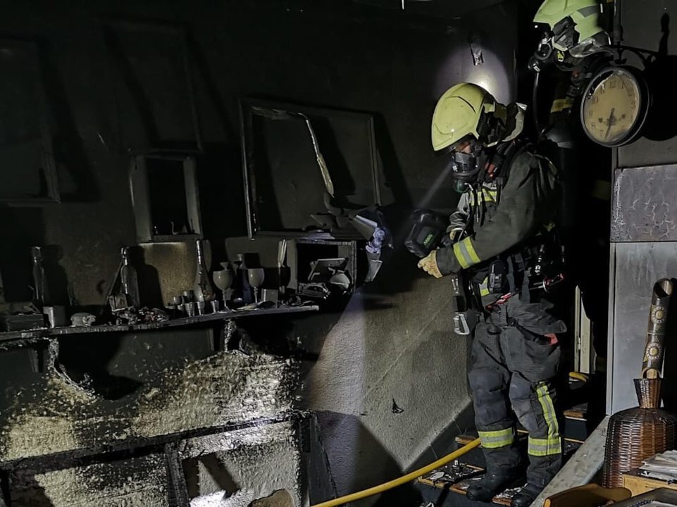 A la llegada de los bomberos centraron su actuación en la evacuación del hombre que se encontraba en el interior y en la localización del foco, prácticamnete autoextinguido.