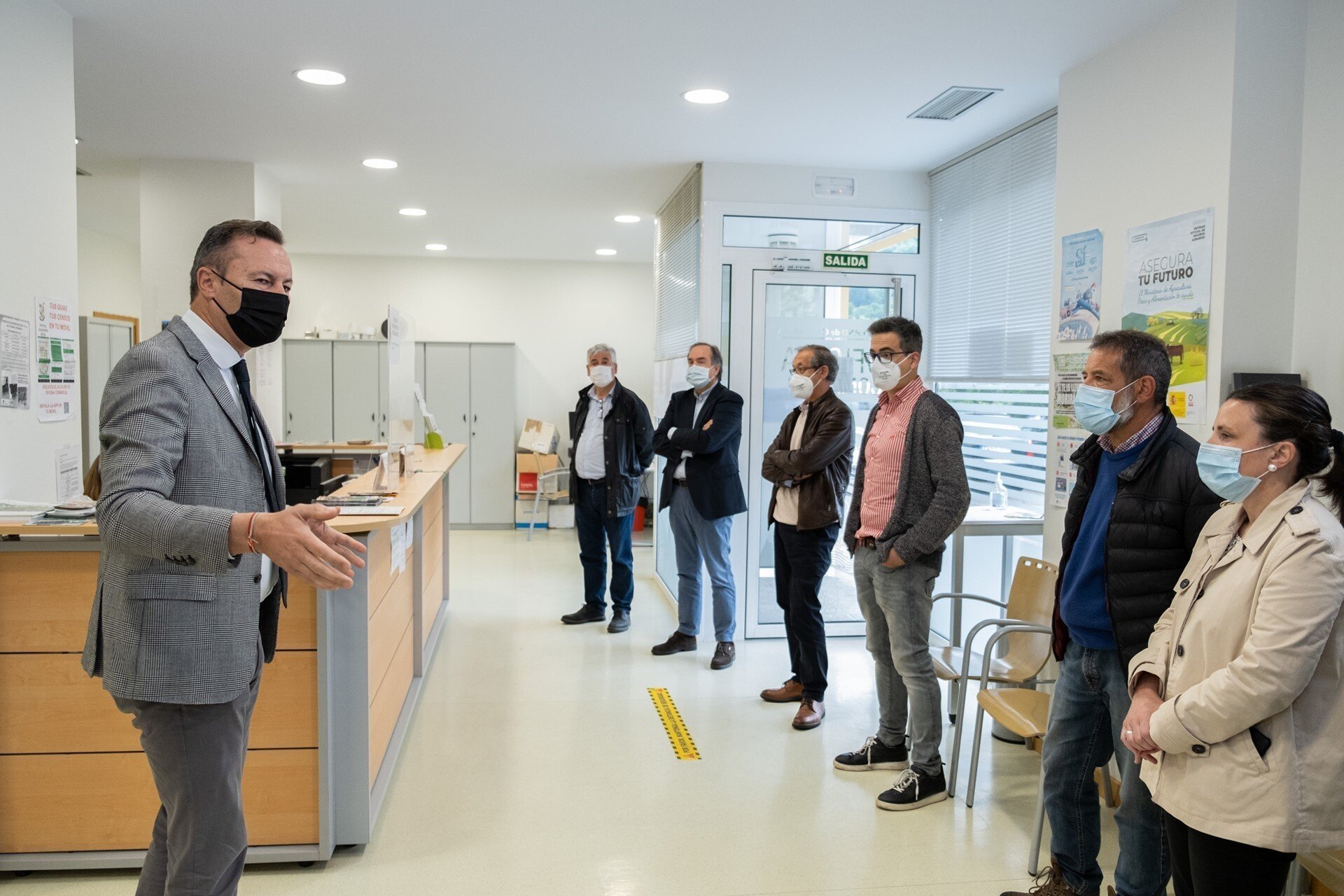El consejero ha estado acompañado en la visita por la alcaldesa de Corvera de Toranzo, Mónica Quevedo; el secretario general de la Consejería, Francisco José Gutiérrez, y el responsable de la Red de Oficinas Comarcales de Cantabria, Miguel Ángel Cuevas.