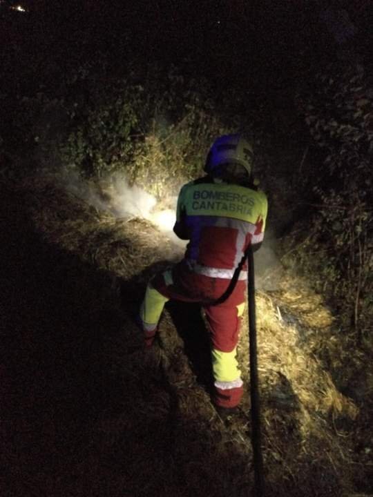 Bomberos de Cantabria han sofocado un incendio en una pila de paja registrado junto a una torreta eléctrica en la localidad de Totero, en el municipio de Santa María de Cayón.