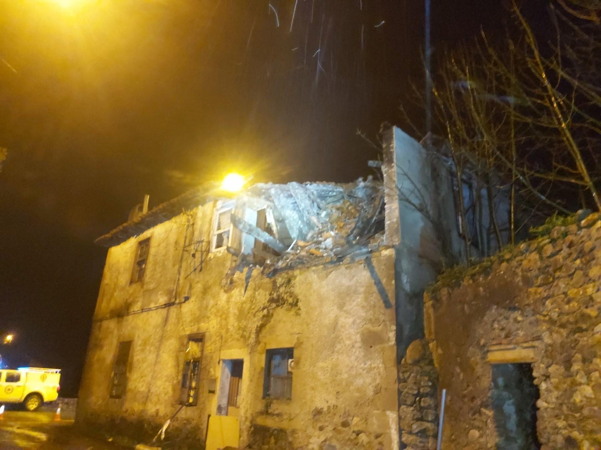 La agrupación de Protección Civil del municipio recibió el aviso del 112 a las 2.00 horas de la madrugada y acudió a la casa para evaluar su estado, tras lo que cortó la calle y señalizó la zona.