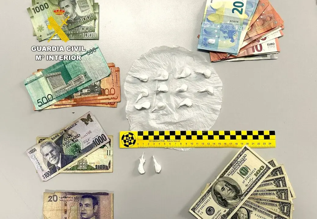 Además, entre sus pertenencias portaba el citado dinero de diferentes países y los billetes estaban arrugados, por lo que según ha informado la Guardia Civil podían proceder de "pases" de droga y dinero, en la que los billetes se entregan de esta forma para evitar ser vistos por otras personas.