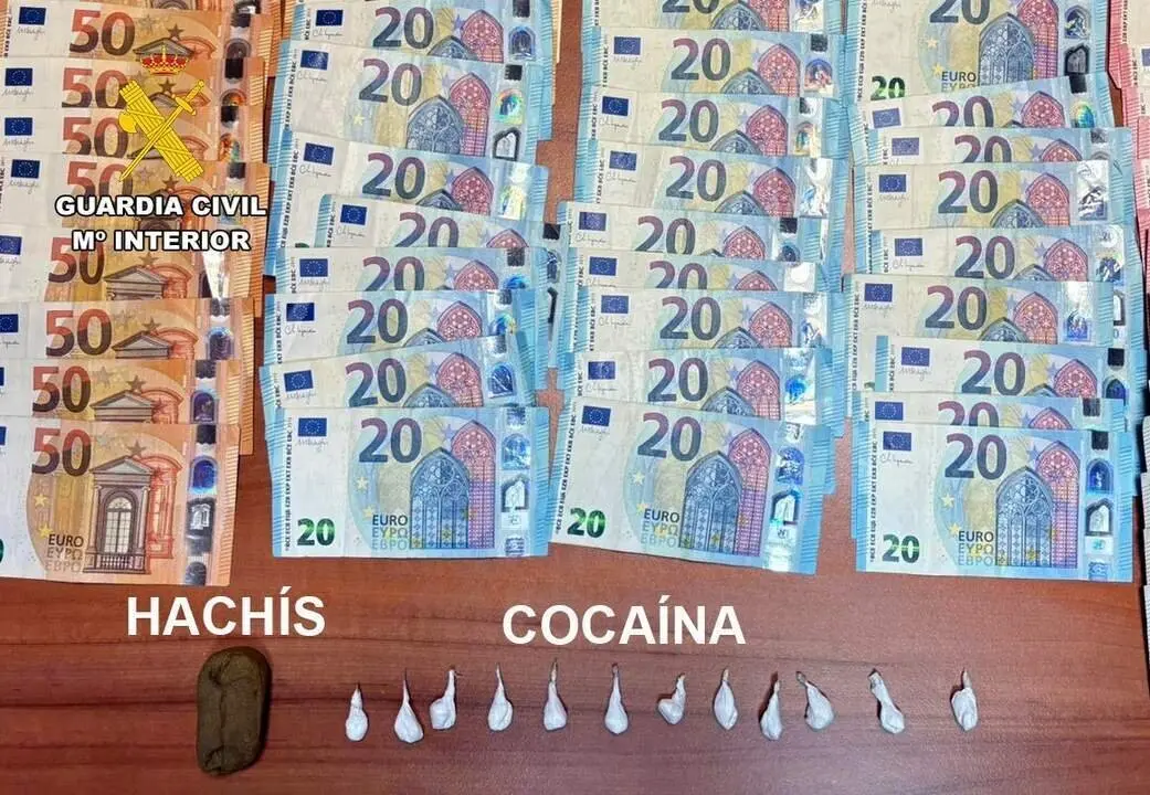 Los guardias le identificaron y registraron sus pertenencias ante la actitud de nerviosismo que mostraba, y encontraron oculta en el interior del pantalón una caja metálica que contenía 12 dosis de cocaína y un trozo de hachís. Igualmente portaba en el interior de una cartera billetes de diferente valor, que podrían ser fruto de la venta de estupefacientes.