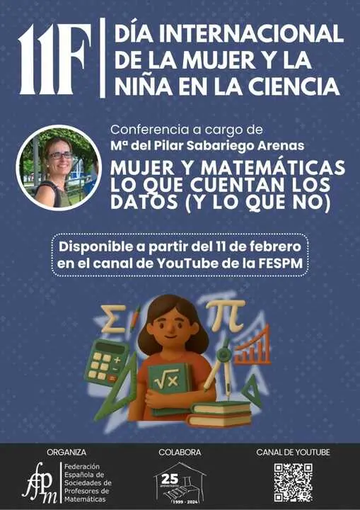 La Federación Española de Sociedades de Profesores de Matemáticas (FESPM) publicará este miércoles 11 de febrero, con motivo del Día Internacional de la Mujer y la Niña en la Ciencia, la conferencia 'Mujer y Matemáticas: lo que cuentan los datos (y lo que no)', impartida por la matemática María del Pilar Sabariego Arenas y grabada en el IES Vega de Toranzo.