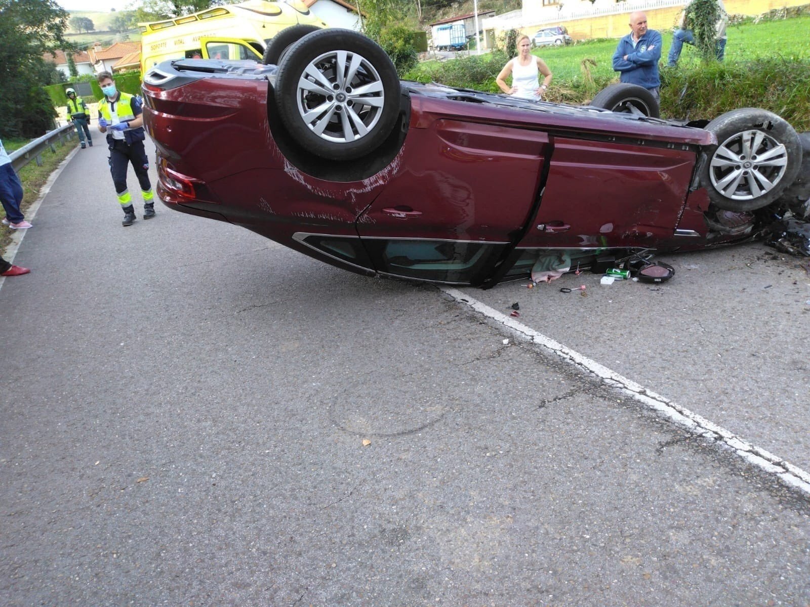 Herido un joven de 24 años tras volcar su vehículo en La Cavada