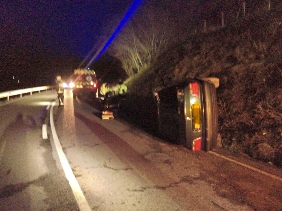Uno de los dos ocupantes de un vehículo ha resultado herido leve esta noche tras volcar con el mismo en la carretera autonómica 264, en Selaya.