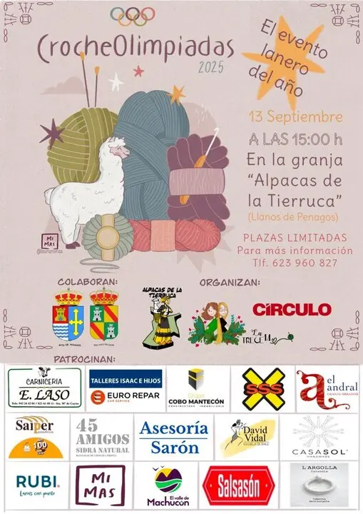 Organizadas por La Trece 14 -el proyecto de dos artesanas tejedoras que tiene su sede en la mercería del mismo nombre en Sarón-, las CrocheOlimpiadas tendrán lugar en la granja de Alpacas de la Tierruca, que desde el año 2012 trabaja de "forma ecológica y sostenible" con el entorno para producir fibra de alpaca, ha señalado la organización en un comunicado.