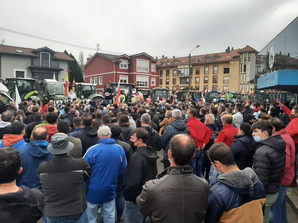 La concentración ha sido organizada por las organizaciones agrarias UGAM-COAG, ASAJA, UPA y AIGAS, que reclaman que se cubran los costes de producción y se deje de "arruinar" a los ganaderos ya que, según sostienen, solo en Cantabria han desaparecido tres de cada cuatro explotaciones lácteas y el número de productores de leche ha bajado por primera vez del millar, situándose en 989.