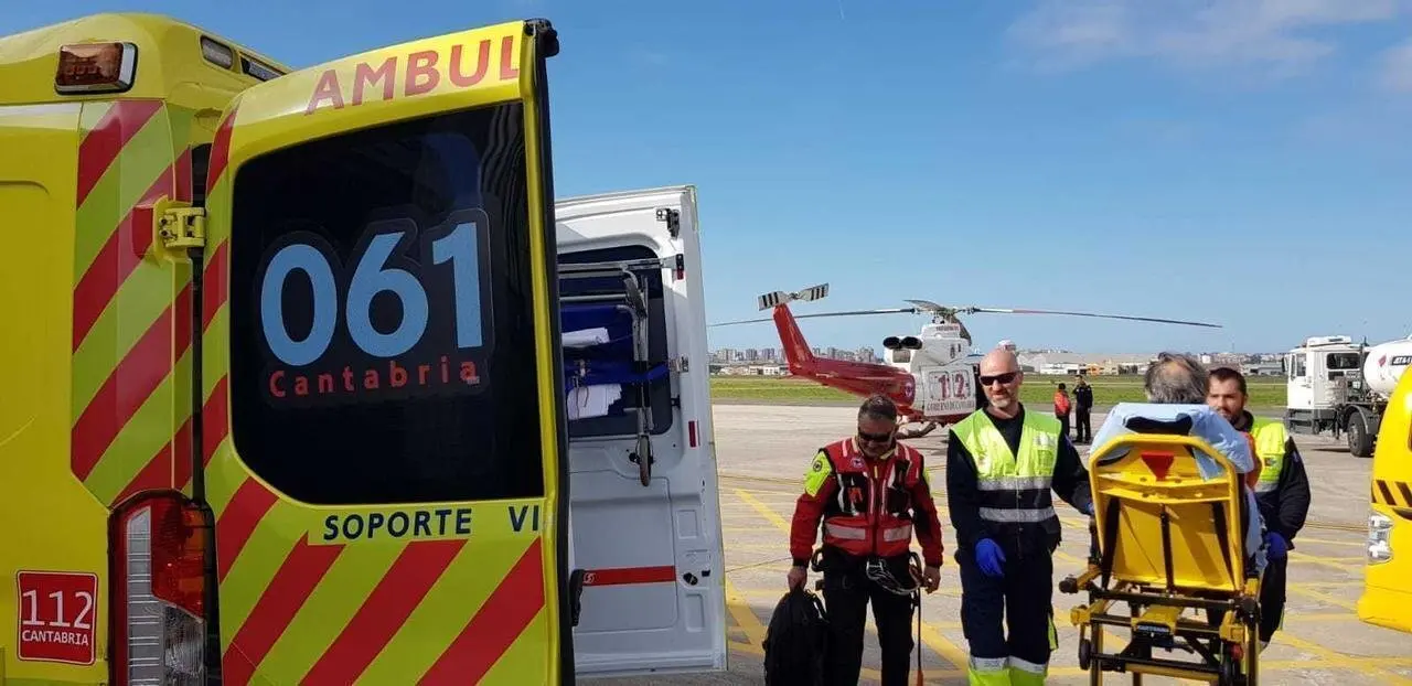 El herido ha sido trasladado, bajo supervisión facultativa, al aeropuerto Seve Ballesteros, donde esperaba una ambulancia del 061 que le ha llevado al Hospital Universitario Marqués de Valdecilla