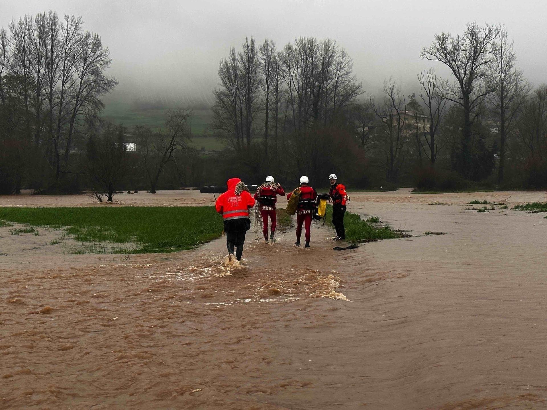 Trataron de llegar cruzando parte de la crecida del río a rescatar a unos perros que se habían quedado en una finca de su propiedad y que están en un isla, temporal, que si se mantienen las previsiones quedará completamente cubierta en las próximas horas.