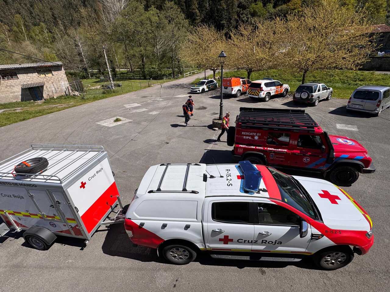 En las labores participan miembros del Servicio de Protección Civil del Gobierno de Cantabria, la Guardia Civil —incluido el Grupo de Rescate e Intervención en Montaña (GREIM)—, Cruz Roja y las Agrupaciones de Protección Civil de Castañeda, Toranzo y Santander, esta última con guías caninos.