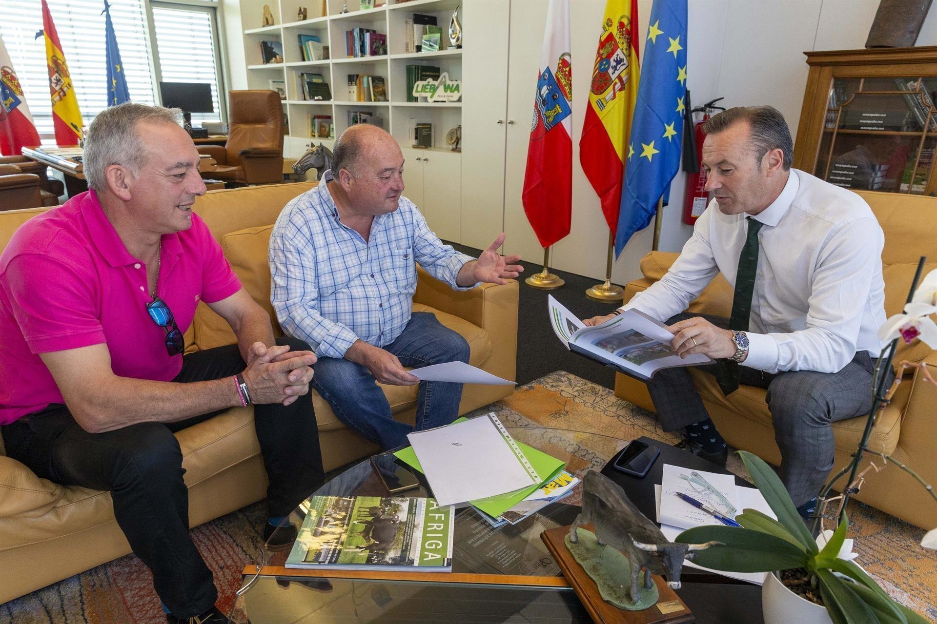 El encuentro, celebrado en el despacho del consejero, ha servido para que ambos dirigentes analicen otras cuestiones de importancia para el municipio, como la situación de las fincas de montes, los cinco grupos de Acción Local que existen en Villacarriedo, la fase en la que se encuentra la candidatura del municipio a Reserva de la Biosfera y la celebración del concurso de ganado Valle de Carriedo, ha informado el Gobierno regional en nota de prensa.