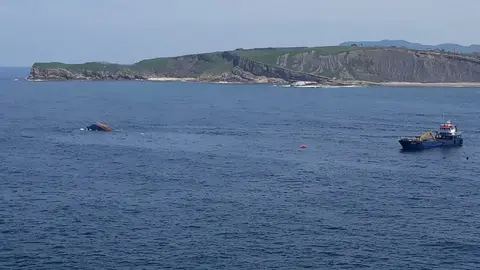 Besaya En marcha los trabajos para reflotar la draga, que será trasladada al puerto de Requejada 26/jul/18 14:38