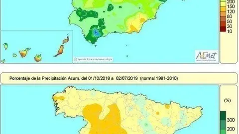 Cantabria Las lluvias acumuladas en España desde el 1 de octubre están un 16% por debajo del valor normal hasta el 2 de julio 05/jul/19 13:03