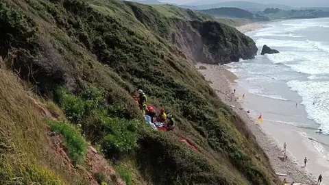 Costa Occidental Rescatado un parapentista francés que impactó contra el acantilado de la playa de Gerra y sufrió varias fracturas Eva Herrera 27/jul/25 21:11