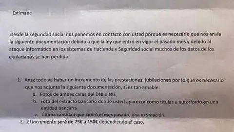 España La Seguridad Social advierte de un intento de estafa en la que se pide por carta el envío del DNI Marta Alonso 16/ene/25 13:01
