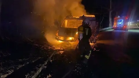 Saja - Nansa Un incendio en una furgoneta en Ibio se propaga a la vegetación Marta Alonso 29/dic/21 10:49