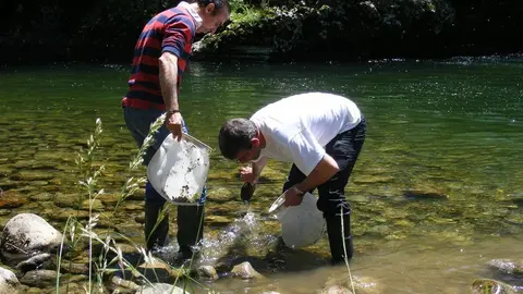 Pesca suelta más de 7.000 alevines de salmón en el Besaya para repoblar la especie
