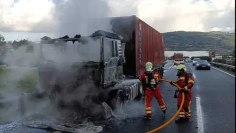 Trasmiera Un camión se incendia en la A-8 a la altura de Bárcena de Cicero Eva Herrera 21/nov/25 18:56