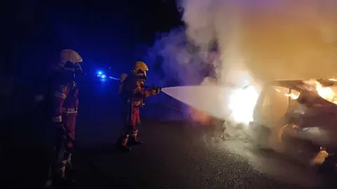 Trasmiera Calcinado un vehículo en la salida de la A-8 en Hazas de Cesto tras incendiarse Eva Herrera 15/dic/25 10:10
