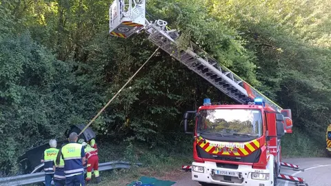 Valles Pasiegos Un coche se sale de la vía en Soba con cuatro ocupantes y uno tiene que ser rescatado por los bomberos Marta Alonso 09/jul/25 10:12