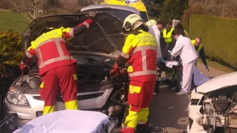 Valles Pasiegos Tres heridos en una colisión entre dos turismos y un ciclista en Santiurde de Toranzo Eva Herrera 18/feb/25 17:32