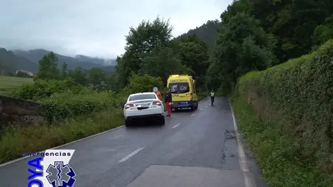 Herido leve un conductor tras caer su vehículo en un riachuelo en Marrón (Ampuero)