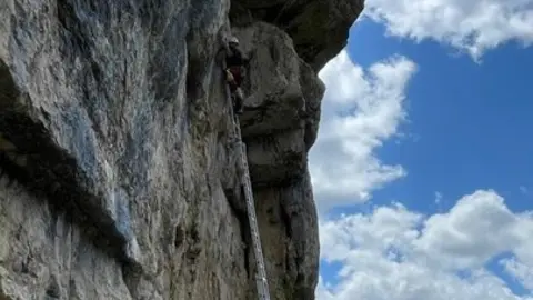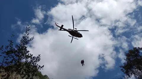 Bomberos del 112 rescatan a un perro enriscado en un barranco en Valderredible