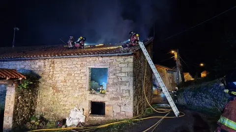 Bomberos del 112 sofocan un incendio en una cabaña ganadera en San Roque de Riomiera