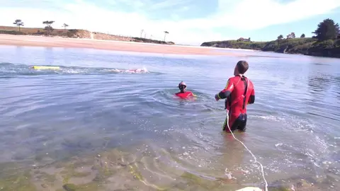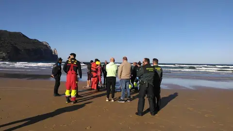 Bomberos del 112 de Laredo retiran una farola con riesgo de caída en Beranga