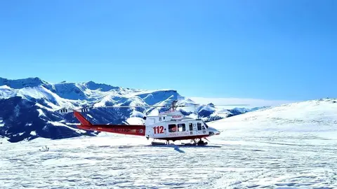 El helicóptero evacúa a un esquiador de travesía accidentado en la sierra de Peña Sagra