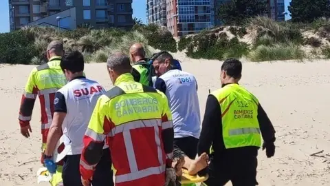 El helicóptero evacua a un senderista accidentado en la cala de La Puntilla, en Castro