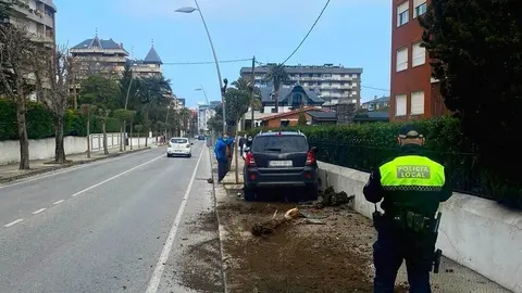 Un coche pierde el control y choca contra un árbol en un paseo de Castro Urdiales