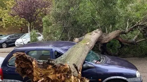Un árbol cae encima de un coche y una rama obliga a cortar una calle en Santander